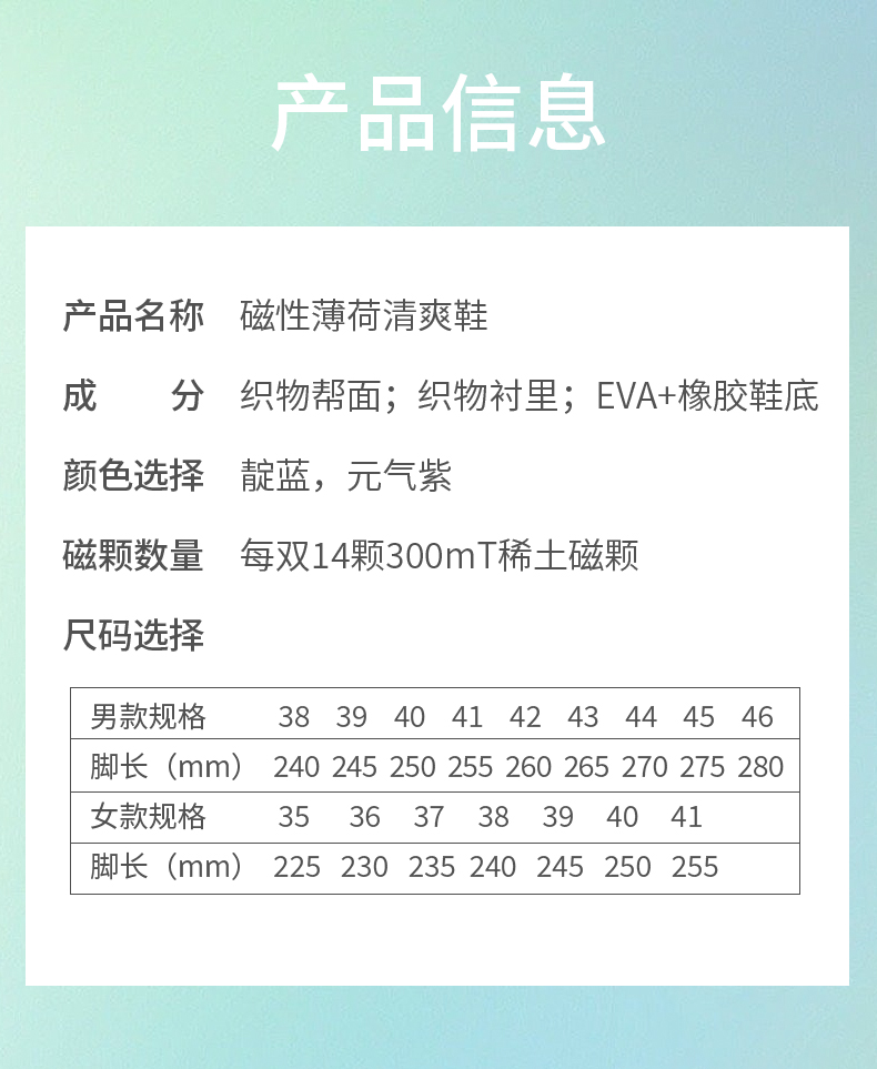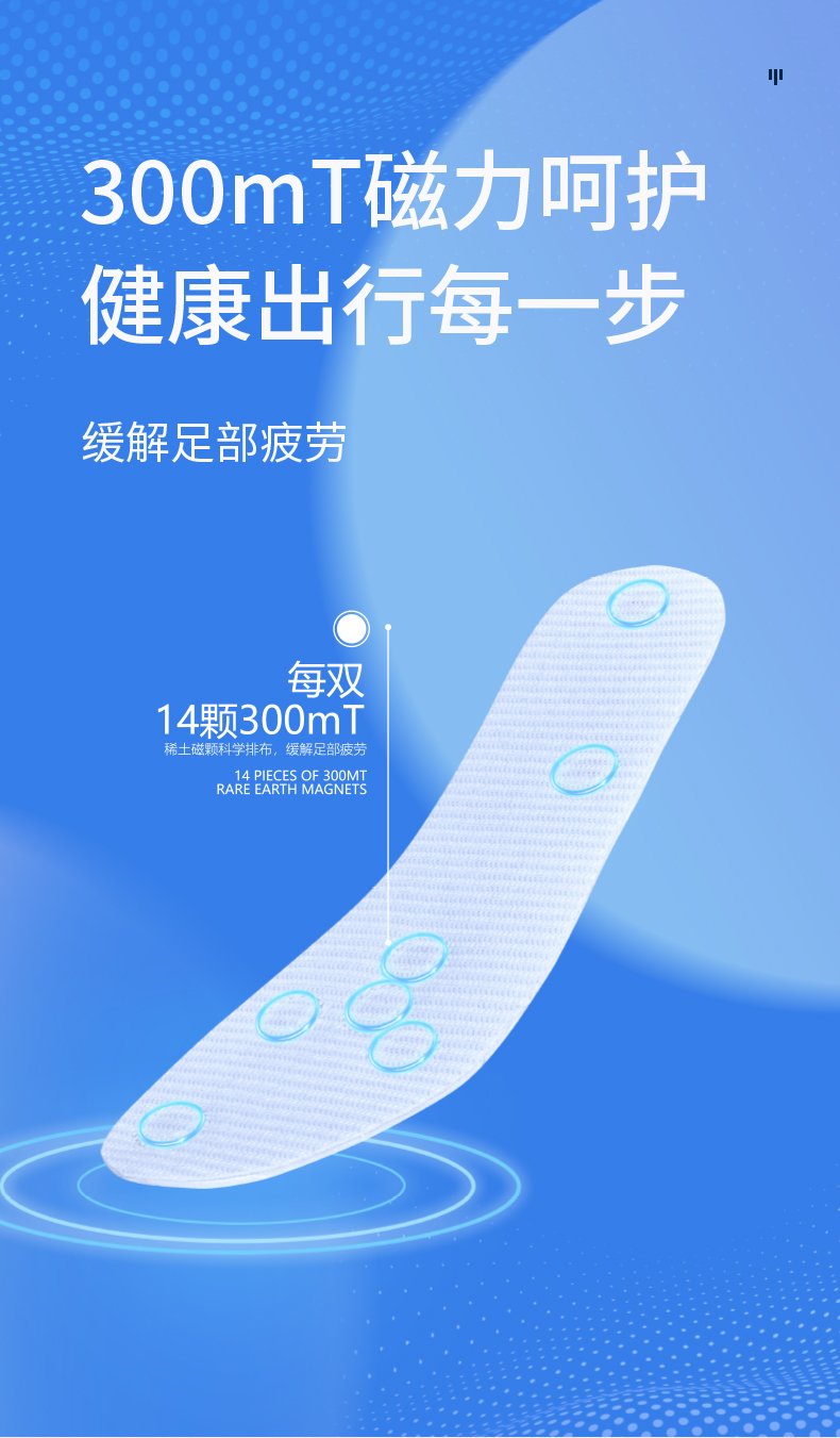 清爽自在出行,步步轻盈透气,300mT磁力呵护健康出行每一步。