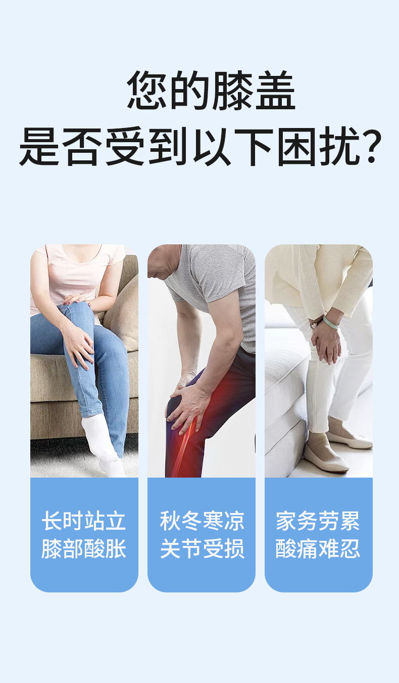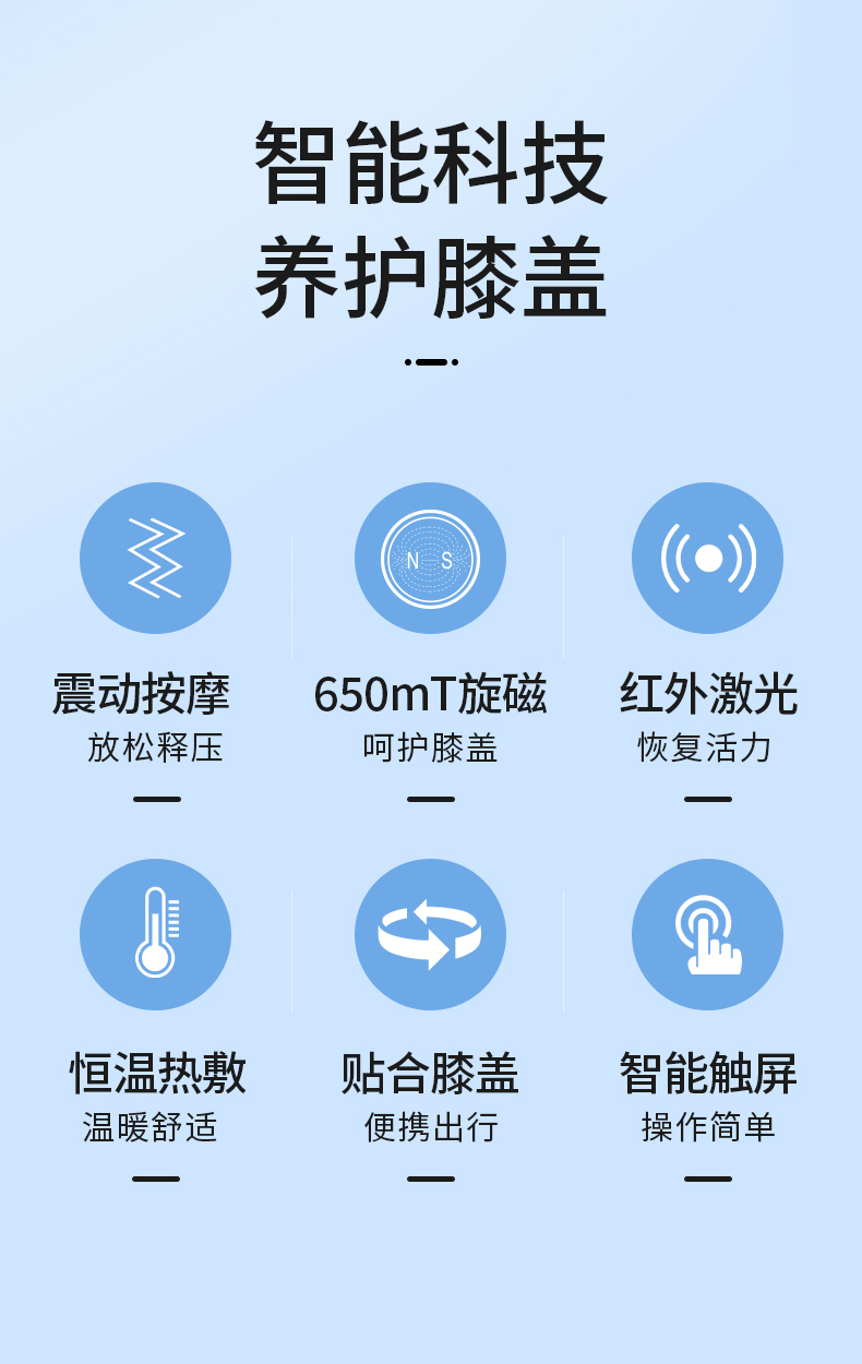 养护膝盖关节,生活更添动力。2D震动按摩,深层放松释压,3档震动按摩模式可选。