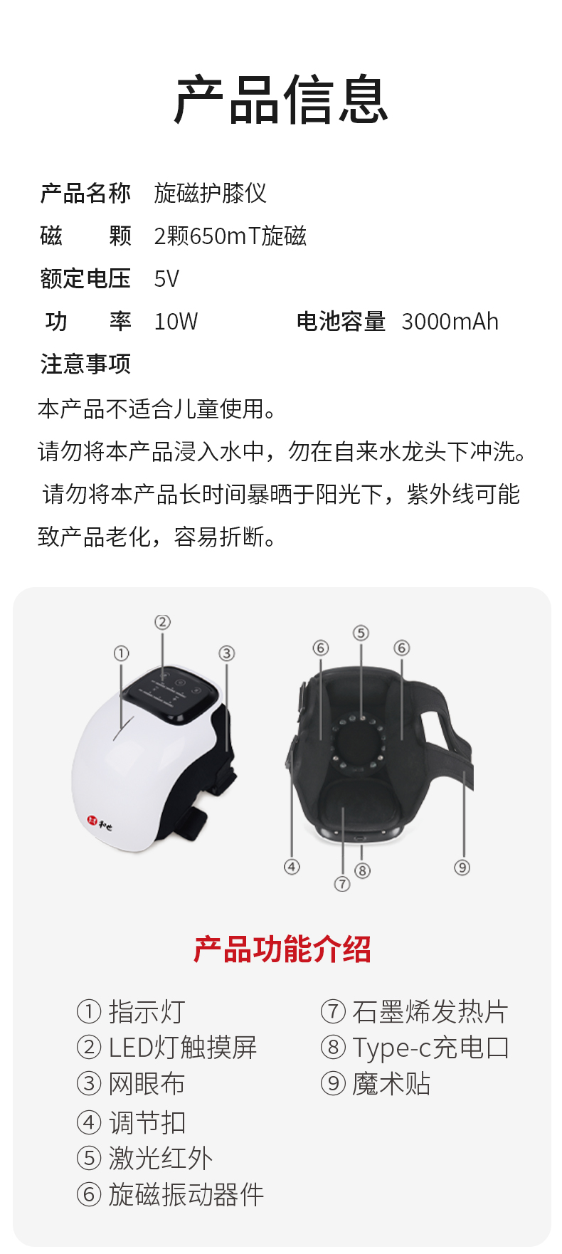双旋磁环绕,全方位呵护膝盖,内置650mT双旋磁。