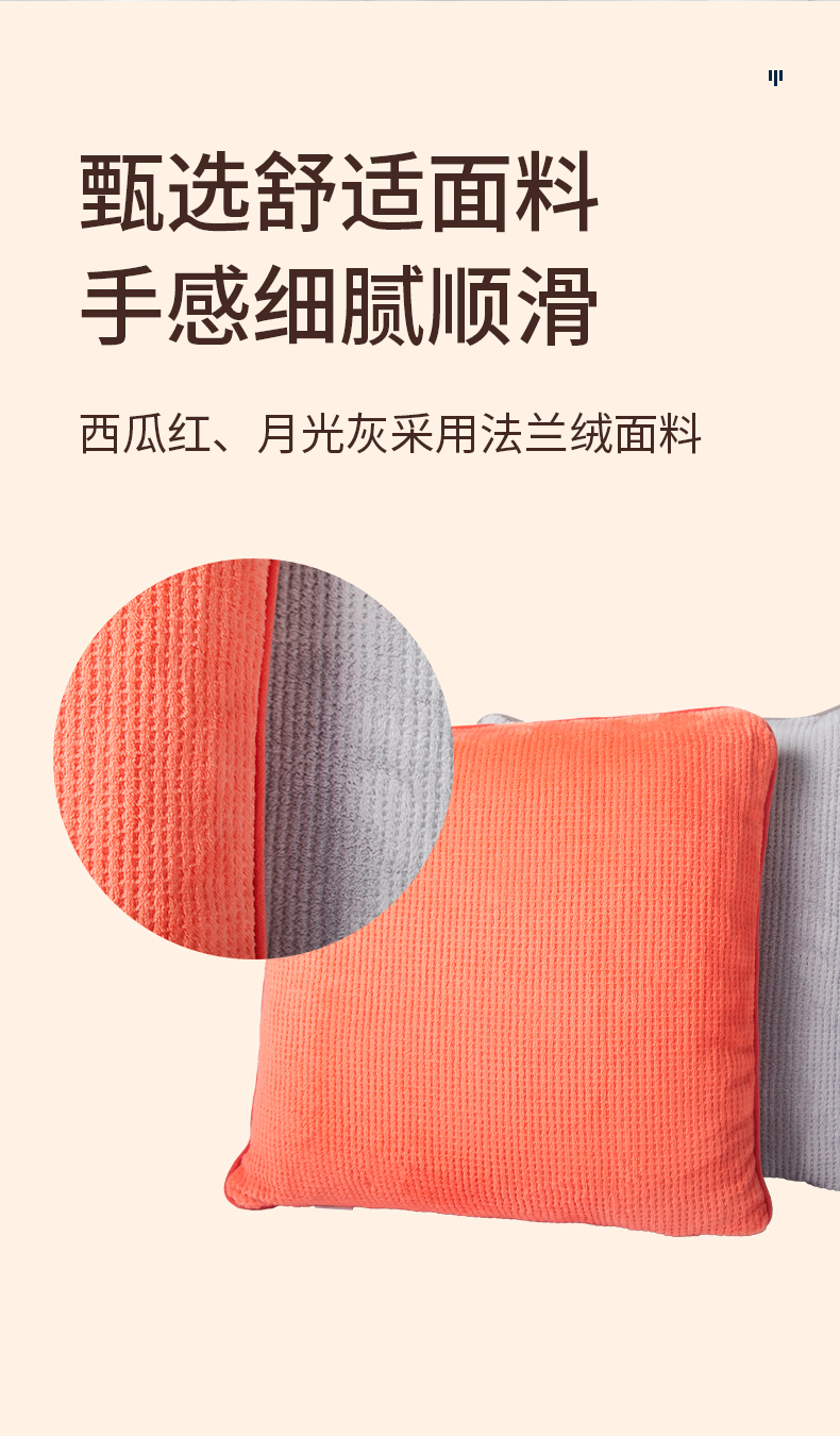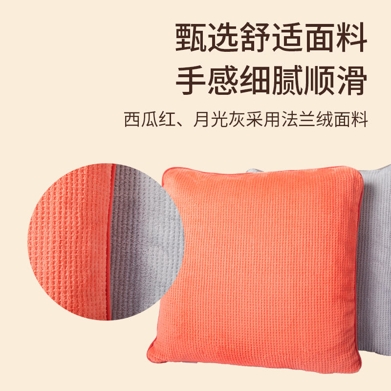 甄选舒适面料手感细腻顺滑,西瓜红、月光灰采用法兰绒面料