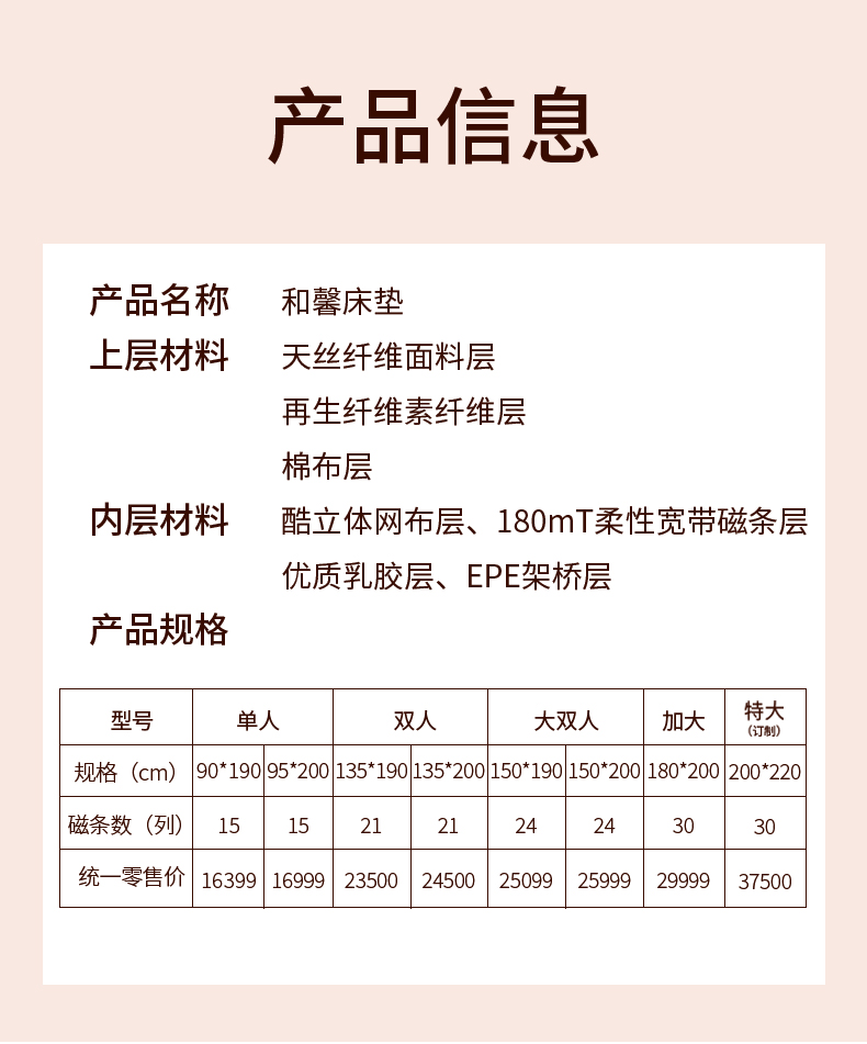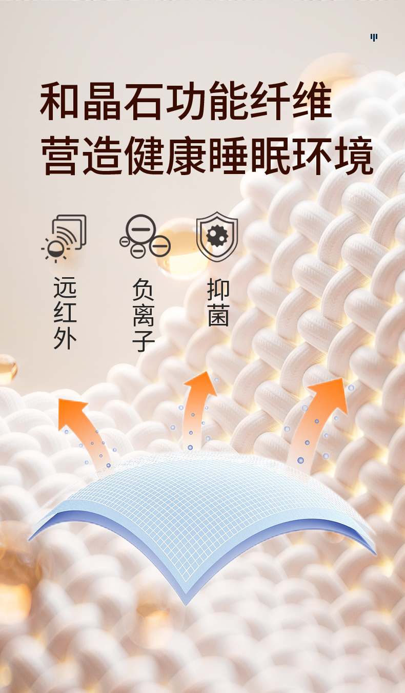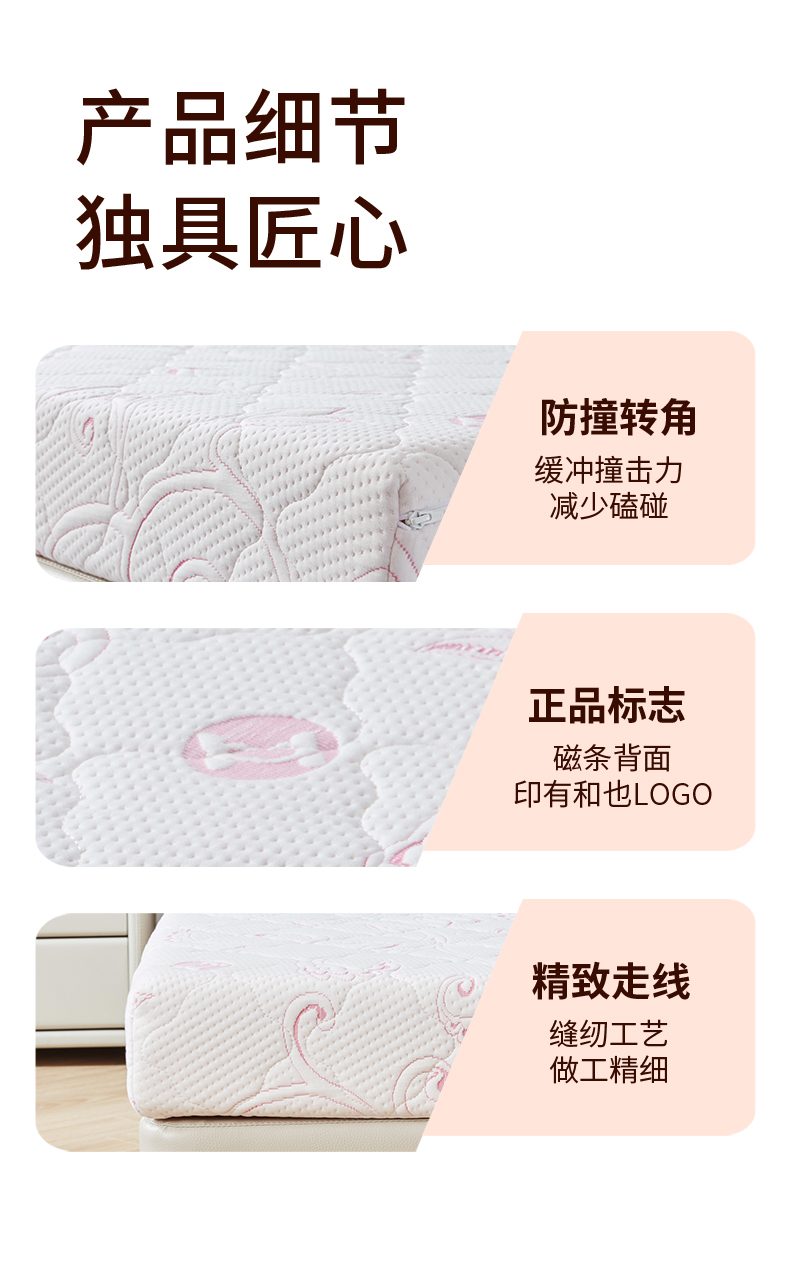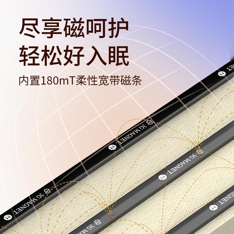 和美人生,温馨相伴。内置180mT柔性宽带磁条,尽享磁呵护,轻松好入眠。