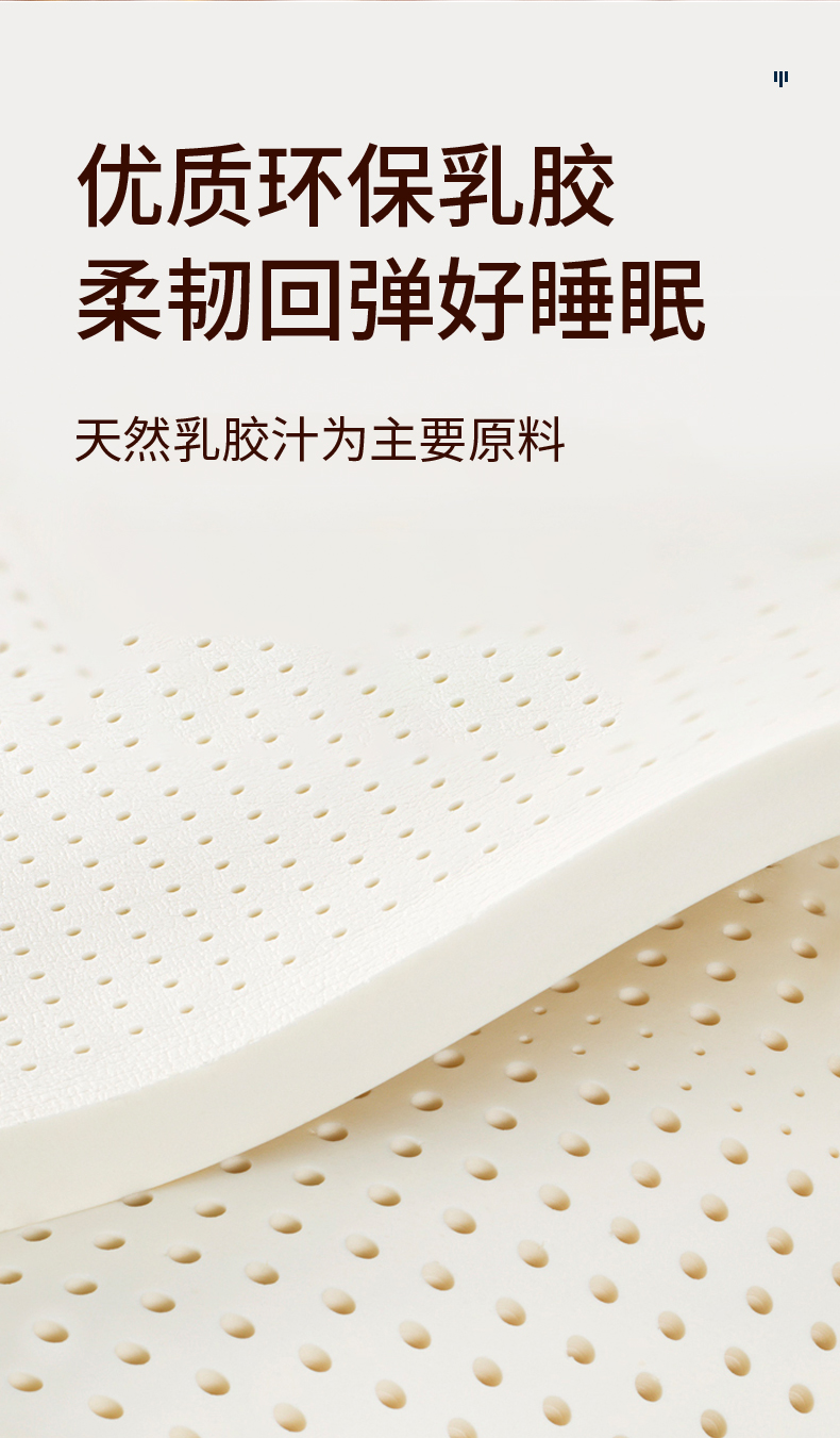 天然乳胶汁为主要原料,优质环保乳胶,柔韧回弹好睡眠