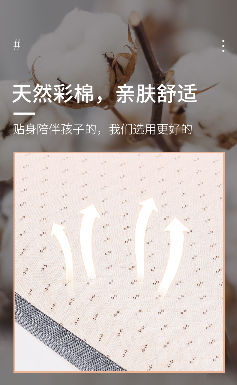 天然彩棉,亲肤舒适,贴身陪伴孩子的,我们选用更好的