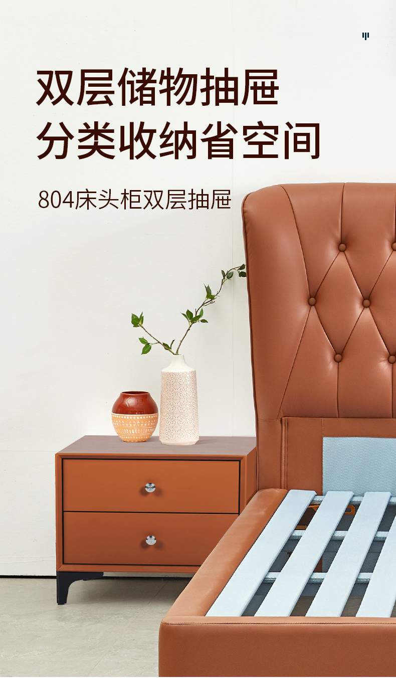 804床头柜双层储物抽屉,分类收纳省空间