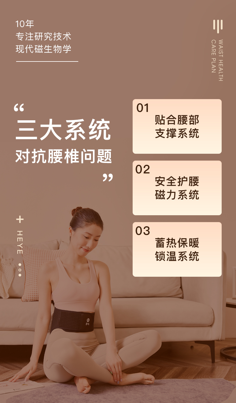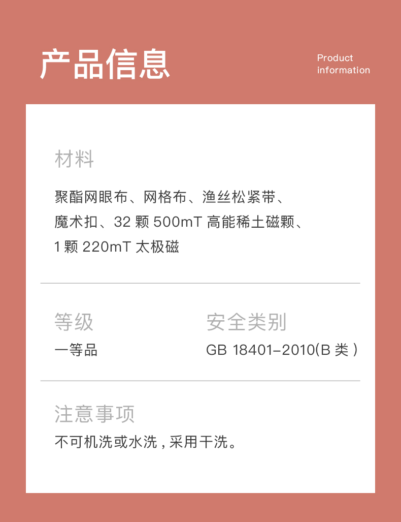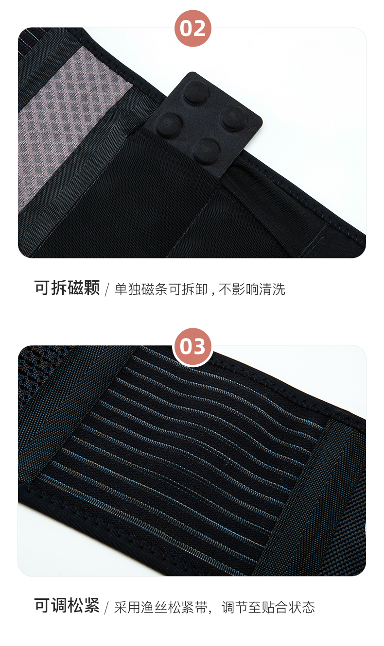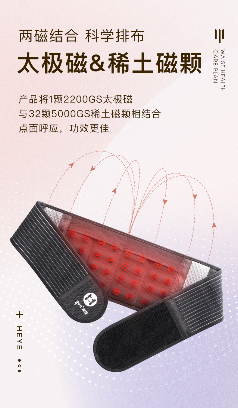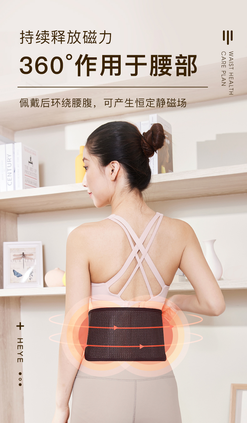 持续释放磁力,360°作用于腰部,佩戴后环绕腰腹,可产生恒定静磁场