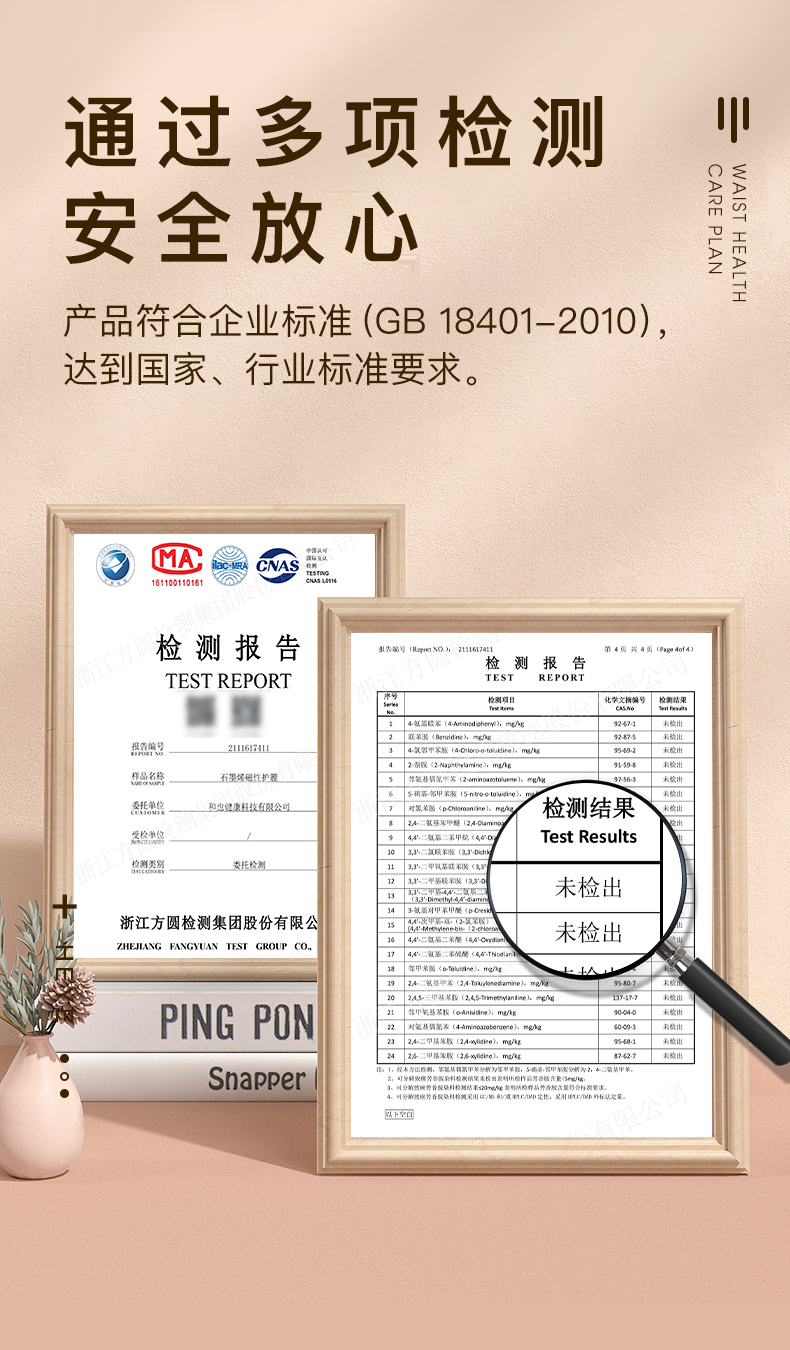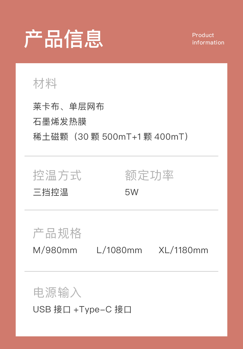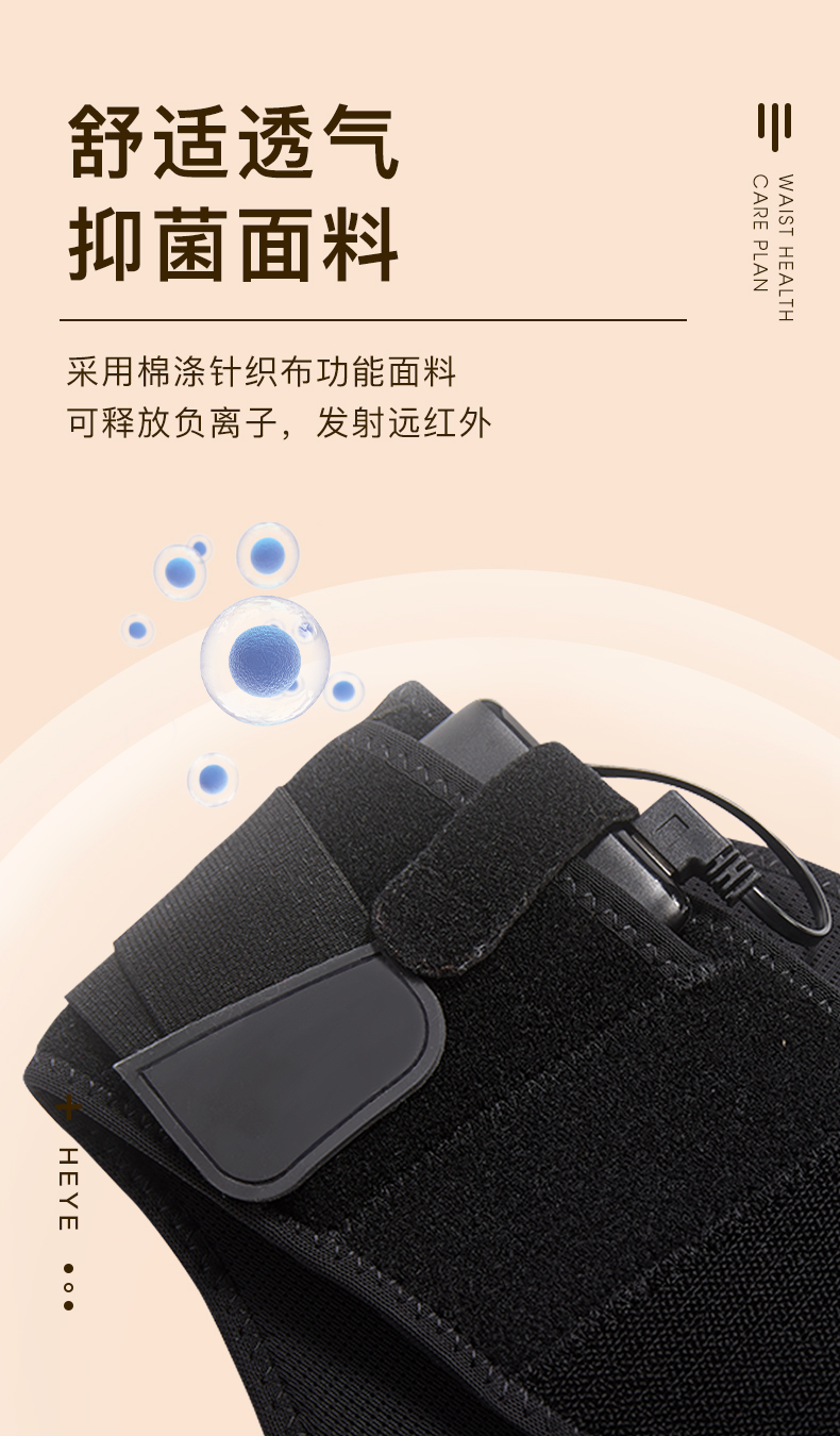 采用棉涤针织布功能面料,可释放负离子,发射远红外。