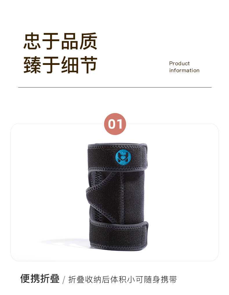立体设计,贴合肘关节。关节活动无束缚,自然舒适不脱落